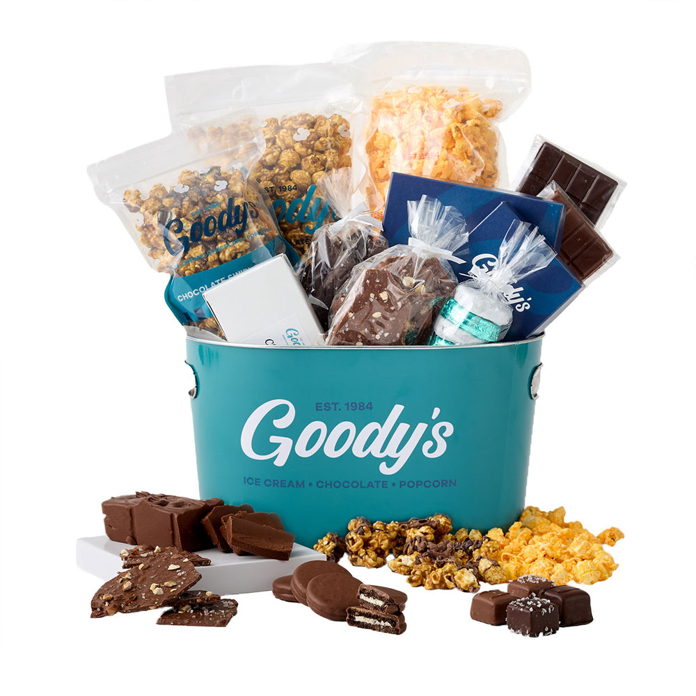 Make your clients feel like kids in a candy shop! Our beautifully curated gift tins—loaded with gourmet popcorn, decadent chocolates, and other exquisite treats—are designed to create smiles and leave lasting impressions. Whether you submit a request online or work directly with the Goody’s team, we’ll help build exactly what you need. Our experts can carefully curate corporate gifts or fully tailor orders to your occasion, budget, timeline, and tastes.